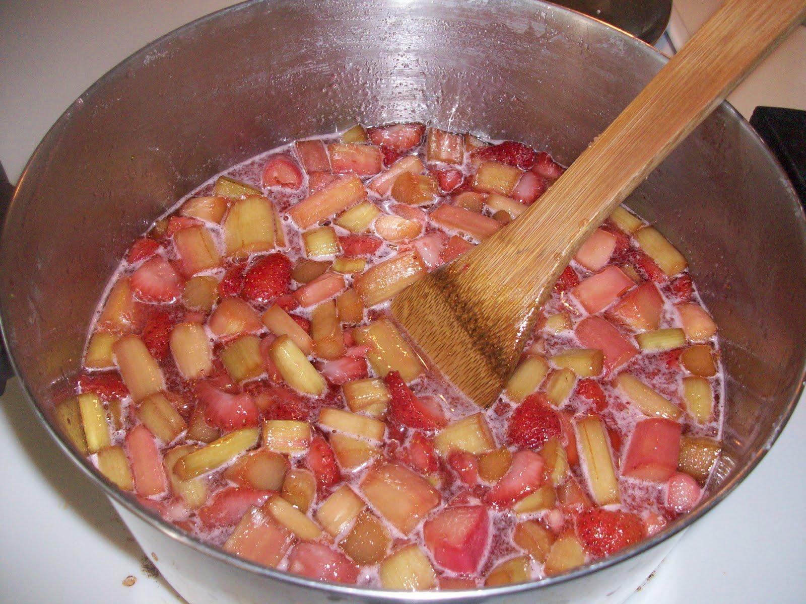 Delicious homemade strawberry rhubarb jam. And now that I've freed myself from any obligatory jam making I do believe I'll whip up some peach melba jam tomorrow; it was one of our favorites last year!